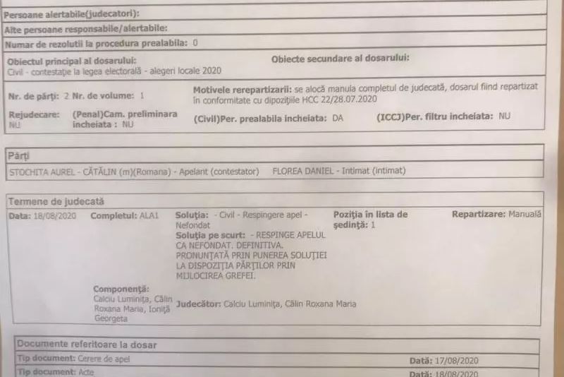 Tribunalul București a respins, marți, apelul USR-PLUS împotriva deciziei Biroului Electoral de acceptare a candidaturii primarului Sectorului 5, Daniel Florea.