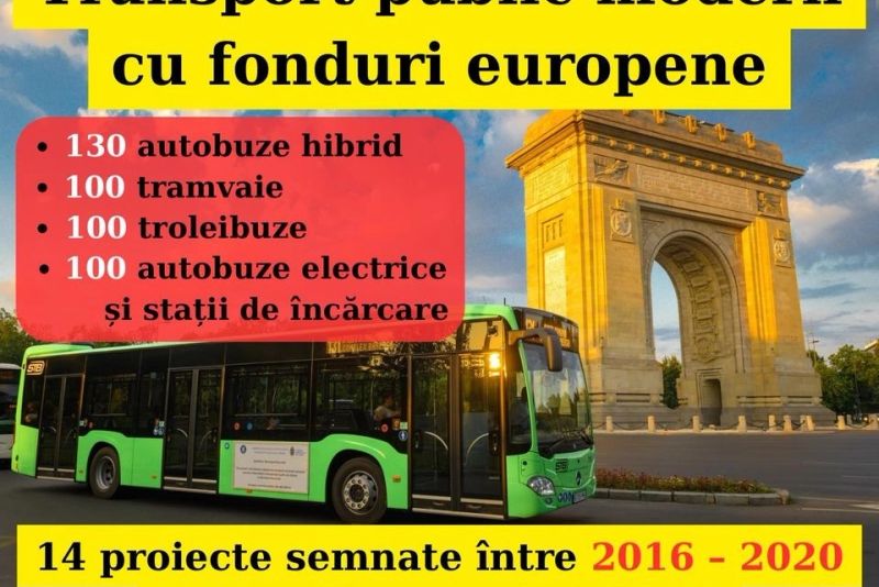 În mandatul 2016 – 2020, am semnat 14 contracte cu finanțare nerambursabilă prin Programul Operațional Regional 2014-2020 și prin Fondul de Mediu în valoare totală de aproape 370 milioane de euro. Totul pentru un transport public modern: 130 de autobuze hibrid, 100 de tramvaie, 100 de troleibuze, 100 de autobuze electrice și stații de încărcare.