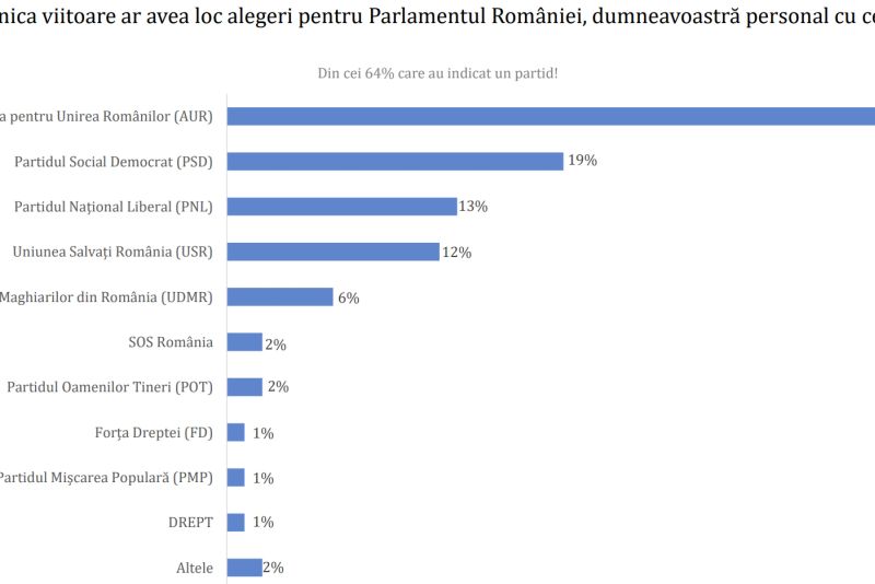 Conform sondajului Avangarde, dacă duminica viitoare ar avea loc alegeri parlamentare, AUR ar câștiga detașat. Iată clasamentul partidelor: