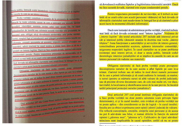 Potrivit sursei citate, în lucrarea de licență a acesteia, intitulată "Reglementări naționale și internaționale cu privire la libertatea de exprimare", se regăsesc paragrafe din două cărți, respectiv "Jurisprudența europeană privind libertatea de exprimare" și "Ghid juridic pentru jurnaliști".